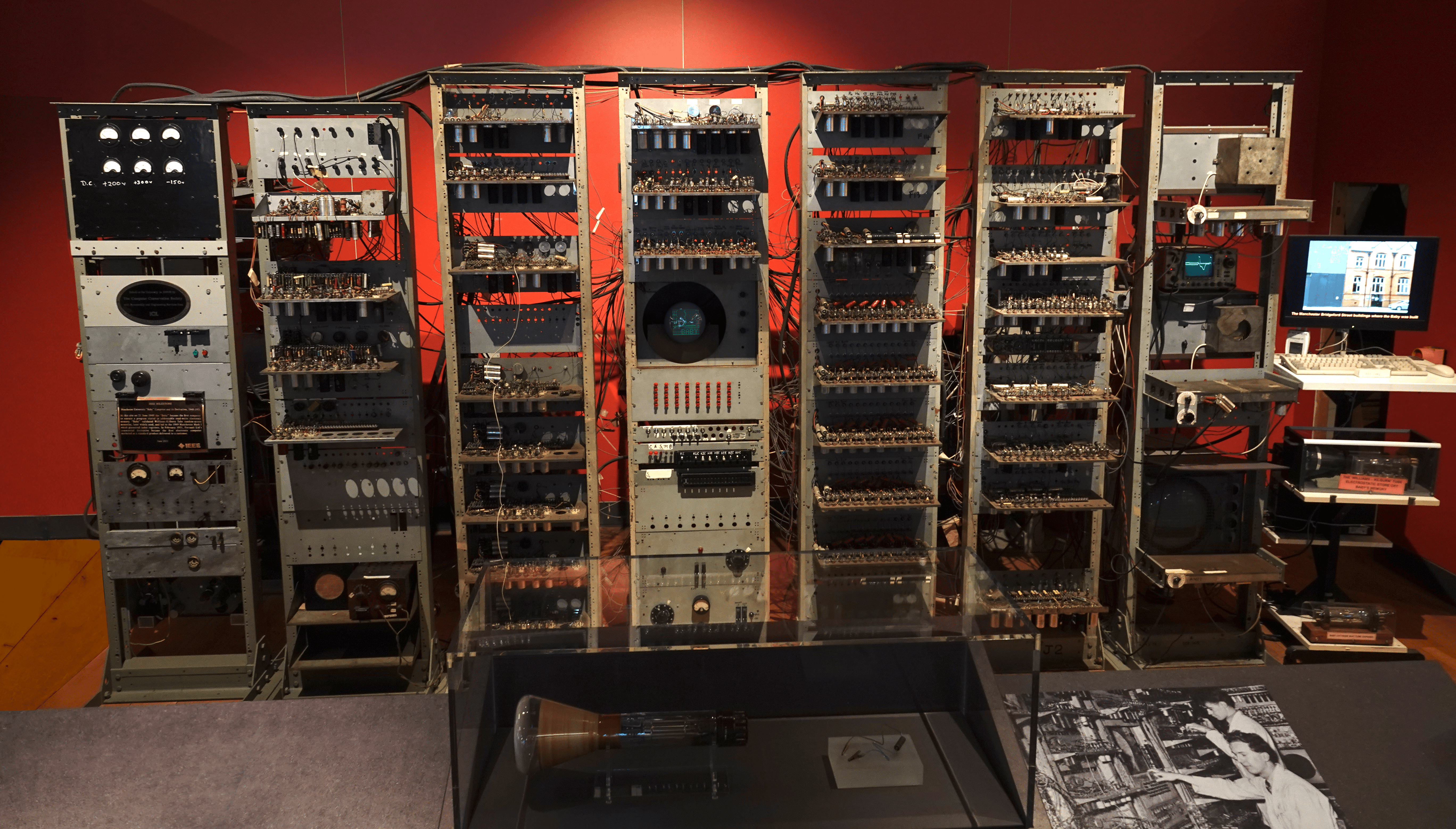 The first programmable electronicUsing the flow of electrons (electricity) rather than mechanical parts. At its core, electricity is the movement of electrons (negatively charged particles) through conductive materials. In electronic devices, we control this flow to represent information: current flowing = 1 (on), no current = 0 (off). Electronic components like vacuum tubes or transistors can switch these states millions of times per second with no moving parts, making them far faster than mechanical switches. This is why electronic computers revolutionised computing, they could perform operations at speeds impossible with gears and levers. computer was ColossusThe world's first programmable electronic computer (1943), built at Bletchley Park to crack German Lorenz cipher messages. It used 2,400 vacuum tubes to perform logical operations at 5,000 characters per second. How was it made? Engineer Tommy Flowers convinced his superiors (initially sceptical of using so many unreliable vacuum tubes) to let him build it. His team worked in secrecy for 10 months, combining telephone exchange technology, vacuum tube electronics, and paper tape readers. The machine was programmed by plugboards and switches, no stored programs yet. Its existence was kept secret until the 1970s. Ten Colossi were eventually built, directly contributing to Allied victory by decrypting German military communications.